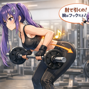 腹圧を高めて腰を保護。高重量ベントロー必須。
